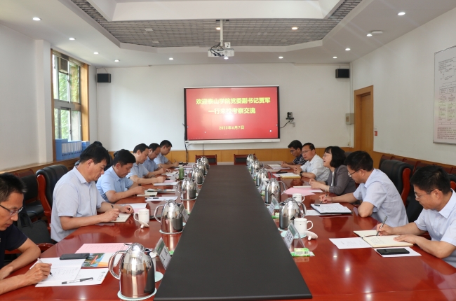 6月7日,泰山学院党委副书记贾军一行来校,就主题教育、宣传思想、统一战线、校内巡察等工作进行考察。学校党委副书记张然会见客人并参加座谈交流。