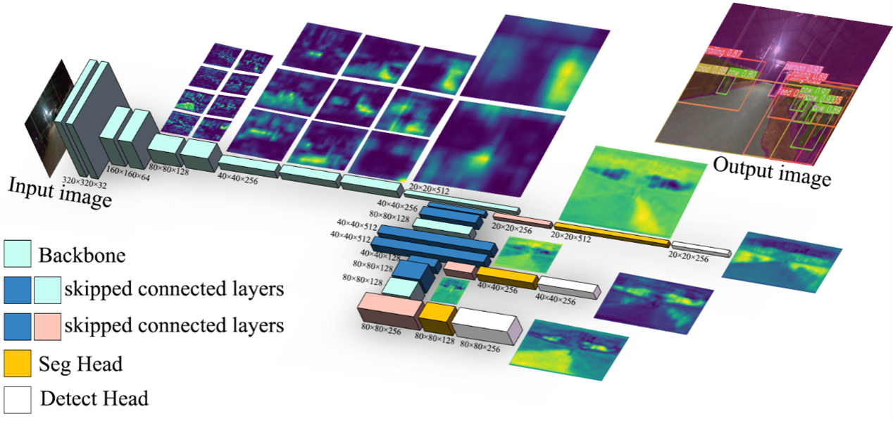 图1. 多任务牛舍目标识别与分割模型结构图