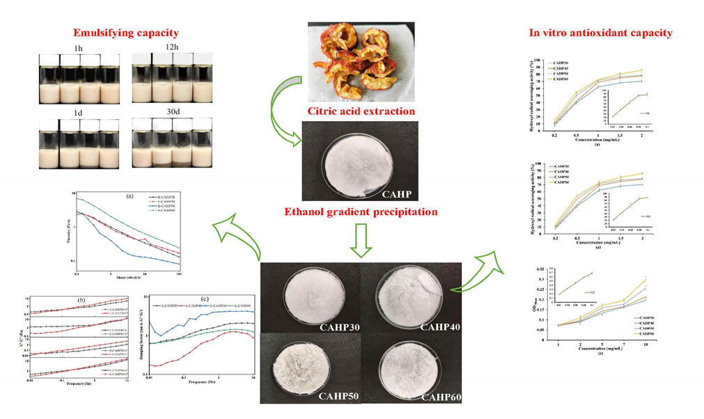 工业化的不断发展导致重金属(Pb2+)向环境中的释放不断增加。通过食物链在体内富集,造成严重危害。重金属的去除和回收对环境保护、健康和资源再利用都具有重要意义。果胶材料可以从各种天然来源获得,可以用作重金属的多功能吸附剂。该研究以冷冻干燥的山楂中提取的果胶为原料,采用乙醇梯度沉淀法(20-60%)分离得到FHP20、FHP40和FHP60三个组分,并对其理化性质和对Pb2+的吸附性能进行了研究,探明了果胶吸附重金属铅的相关机理,为山楂果胶作为一种潜在的生物吸附剂提供了理论支撑。
