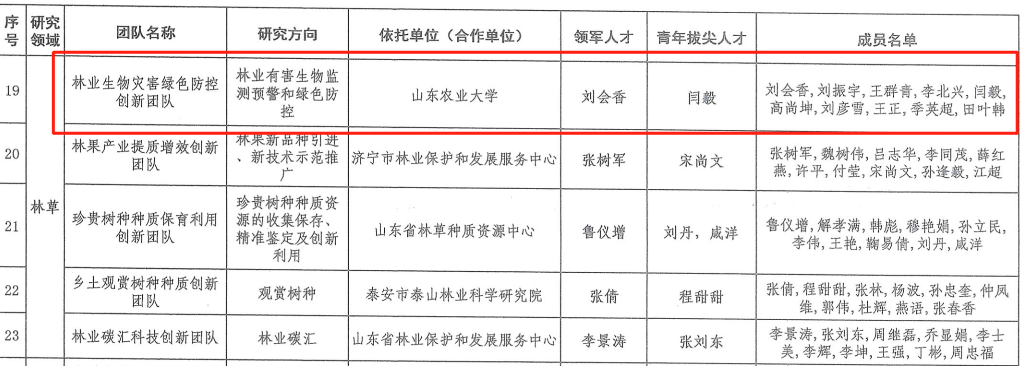 植物保护学院林业生物灾害绿色防控创新团队入选山东省第一批自然资源高层次科技创新人才团队